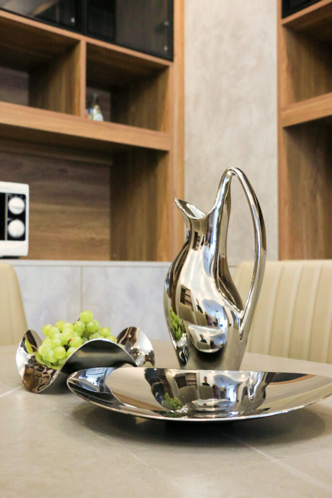 入戶整面墻做了滿墻柜設(shè)計(jì),鞋柜、儲物柜、餐邊柜融為一體,功能多樣,無拉手設(shè)計(jì)增強(qiáng)了空間的簡潔感,膚感灰色門板花紋充滿藝術(shù)氣息,近距離一看仿佛是畫筆隨意的涂鴉,非常時(shí)尚大氣。